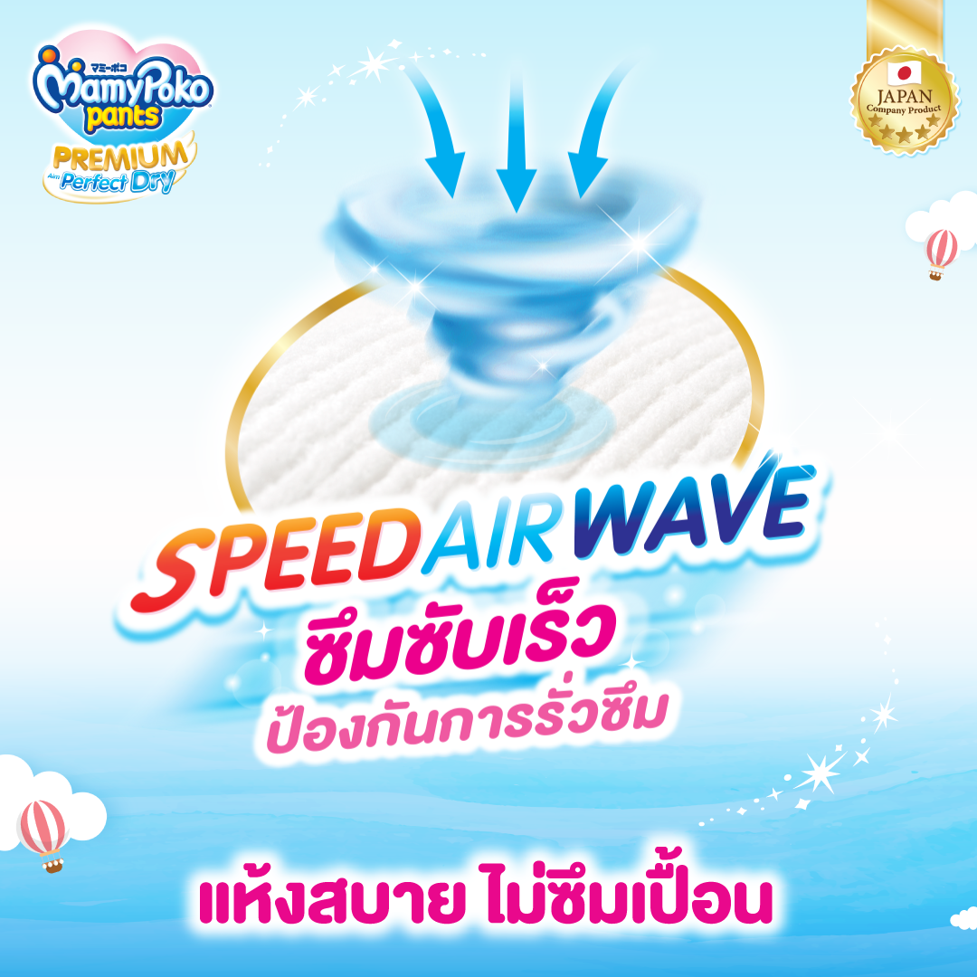 กางเกงผ้าอ้อมเด็กสำเร็จรูปพรีเมี่ยมที่ให้ความแห้งสบายที่สุดจากมามี่โพโค**สปีด เอ็กซ์ ดราย แผ่นซึมซับพิเศษลายตารางกระจายของเหลวลงตามร่องได้ทั่วแผ่น ซึมซับทันทีรอบทิศทาง ก้นลูกน้อยไม่เหนียวเหนอะหนะ ไม่ต้องพักผิวก็สบายตัว อารมณ์ดีตลอดเวลา